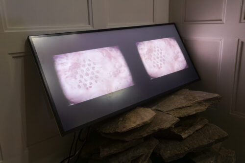 A sentence from Jenny Holzer’s Truisms (1978) was lithographed on Solnhofen limestone on a micrometre scale. Photolithography, a key technology in microchip production, can be traced back to the German artist Alois Senefelder, who experimented with the same stone almost 200 years ago. To make the engraving visible, images were taken with an electron microscope.