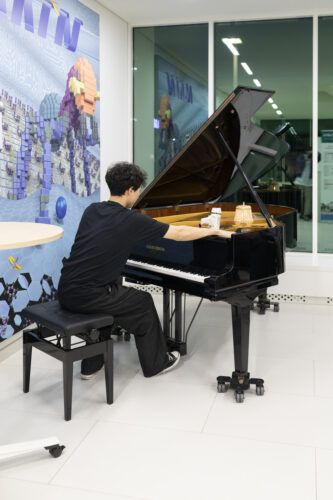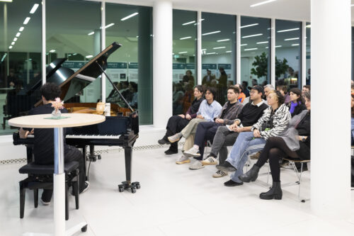 The resulting sounds are not well-formed or harmonious compositions as in pop or classical music. Instead, they are reminiscent of natural sounds and the aesthetics of Musique Concrète: sounds from unconventional materials such as noise and environmental resonances. By making the hidden sounds of the background perceptible, the work unfolds different layers and timbres produced by two instruments – laptop and fortepiano – and invites listeners to immerse themselves in the grain of the sound.