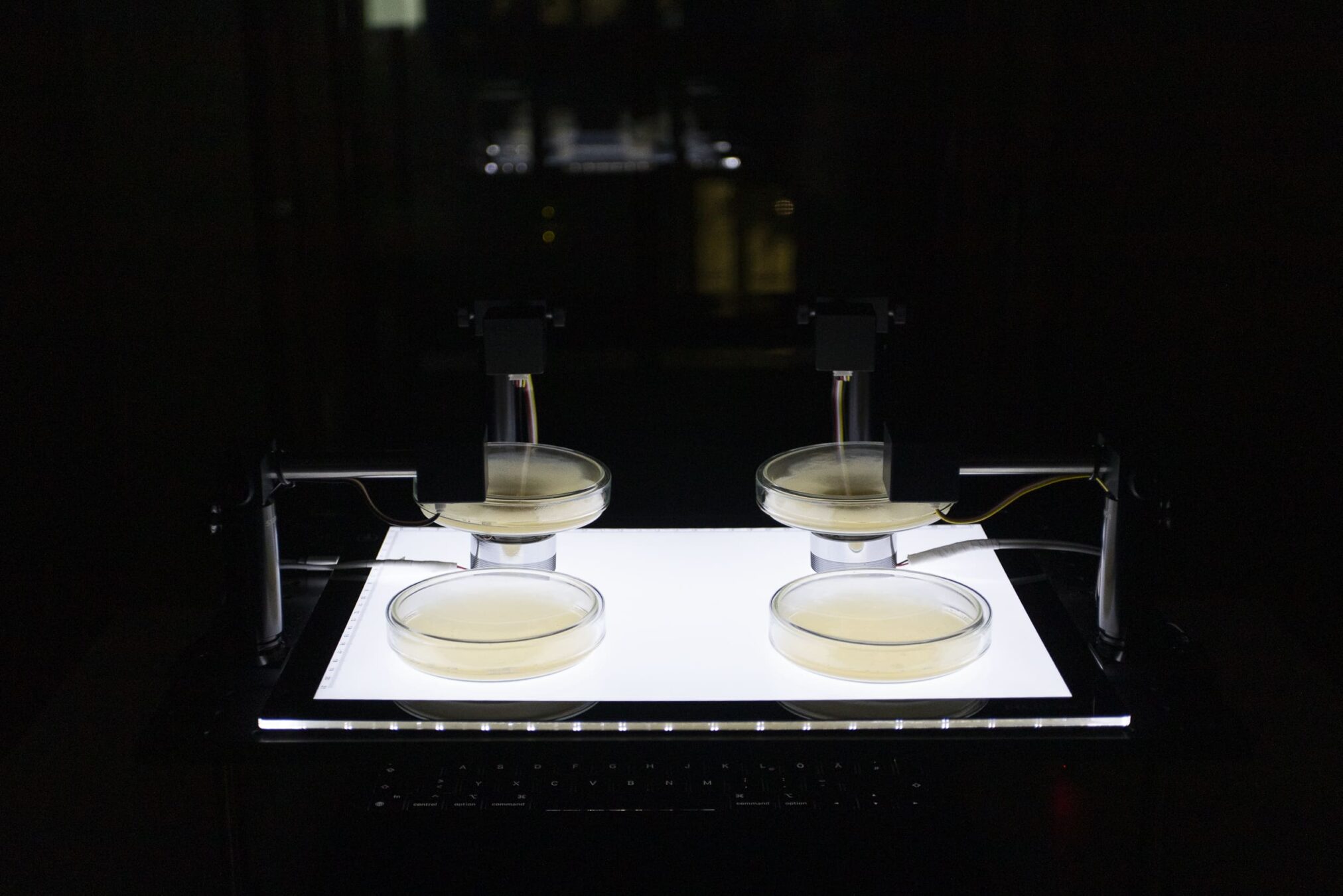 Im engen Austausch zwischen Kunst und Wissenschaft wurde DNA gefaltet und myzelhaltiges Substrat geformt, Informationen wurden in virtuelle Daten transformiert und zu feinen Metallstrukturen verarbeitet.