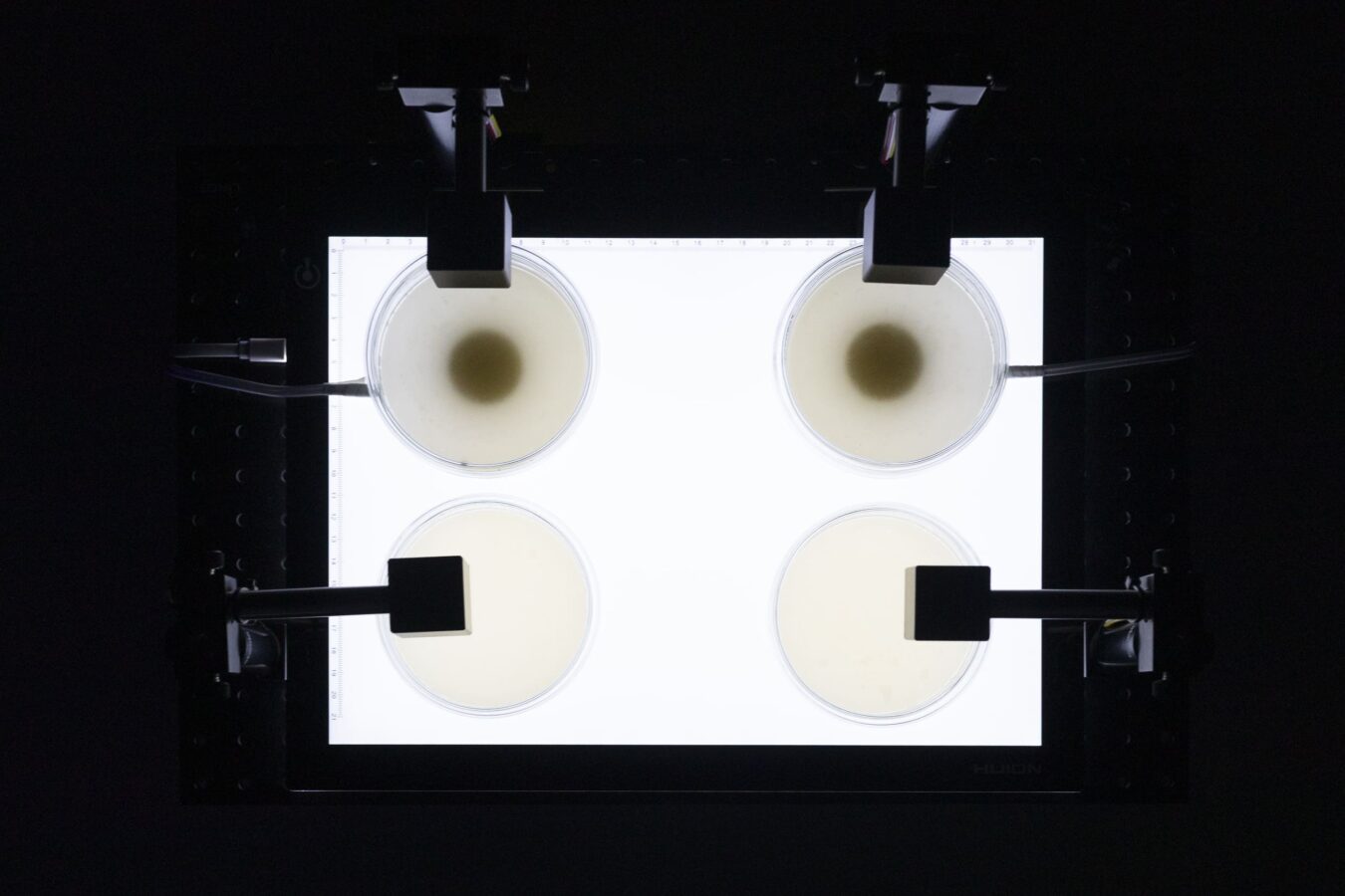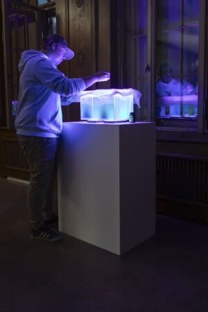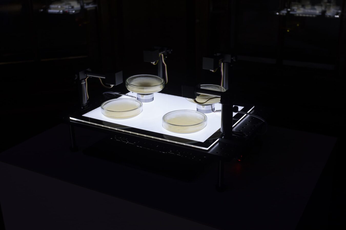 Im engen Austausch zwischen Kunst und Wissenschaft wurde DNA gefaltet und myzelhaltiges Substrat geformt, Informationen wurden in virtuelle Daten transformiert und zu feinen Metallstrukturen verarbeitet.